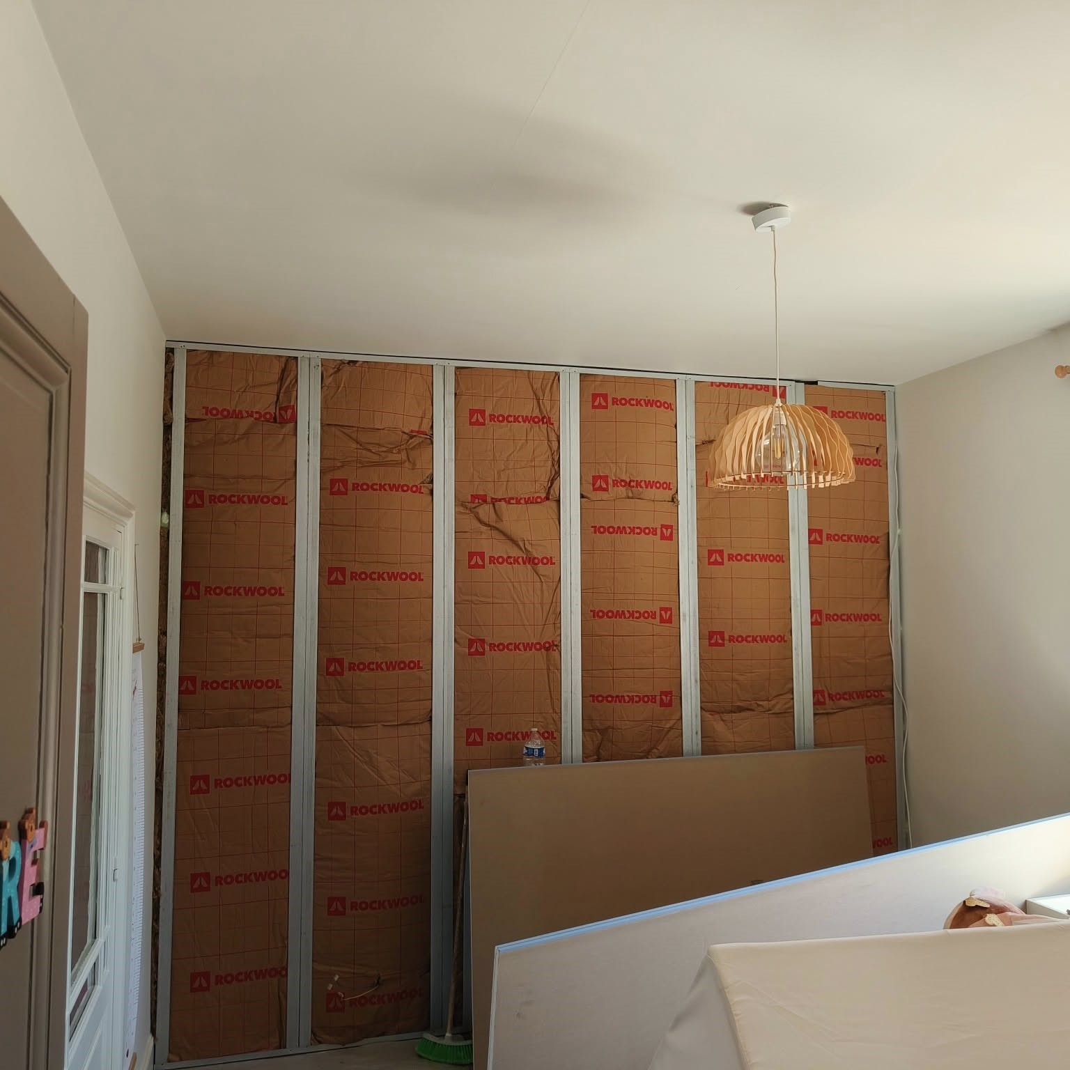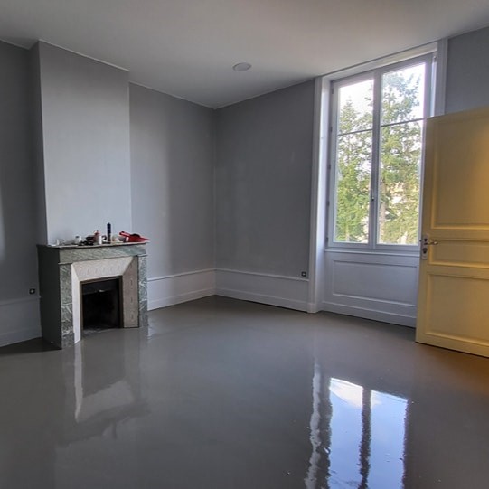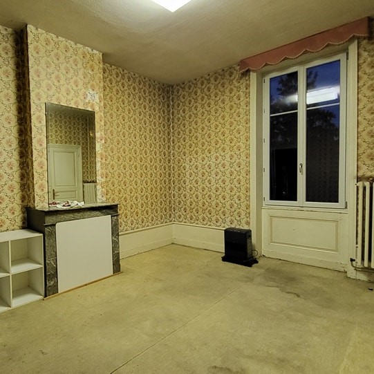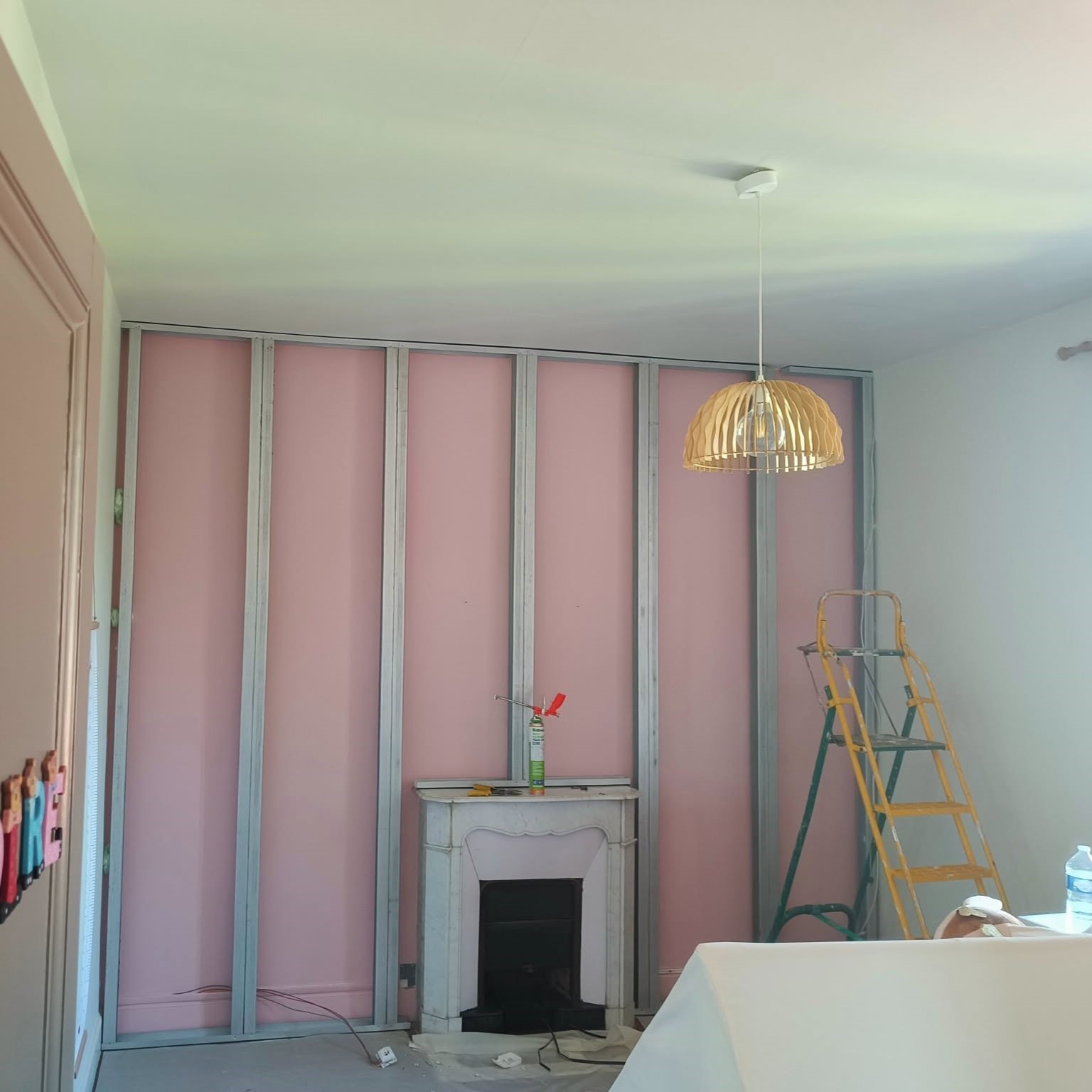 Travaux réalisés : Dépose de l’ancien papier peint, préparation complète des murs (enduit), mise en peinture des murs et plafonds, et pose d’un nouveau sol vinyle.